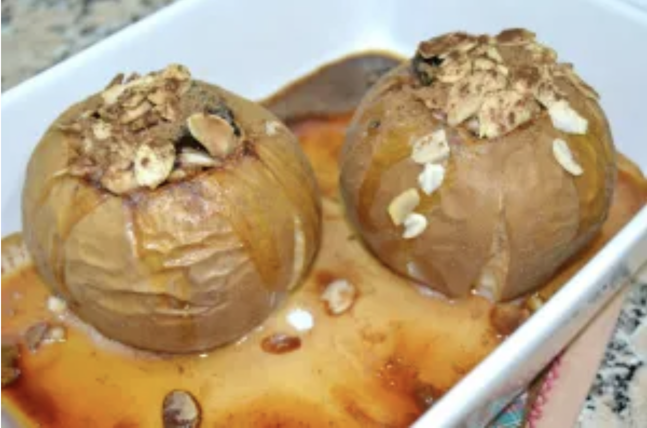 - Levar ao forno, a 180ºC por cerca de 30 minutos ou até que a maçã comece a ficar ligeiramente rachada.