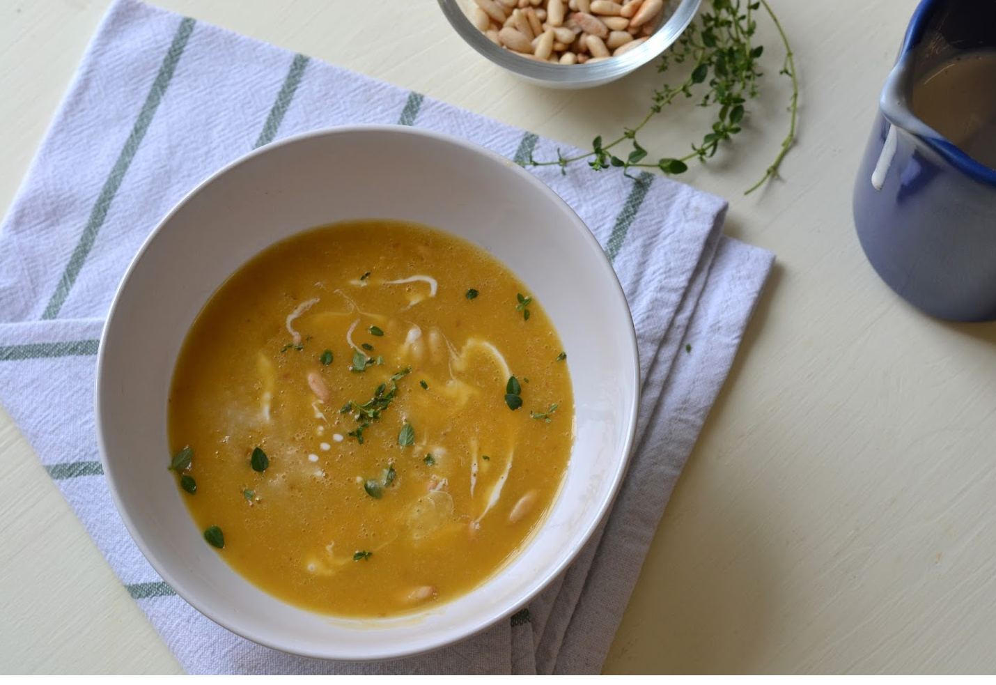 - Serve with toasted pine nuts, cream and some fresh thyme leaves.