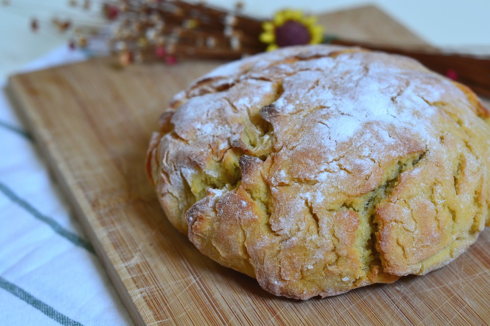 - Polvilhar com farinha de trigo, fazer uma bola e colocar no tabuleiro polvilhado com farinha e deixar que dobre de volume. Levar ao forno pré-aquecido a 220ºC cerca de 50 a 60 minutos.