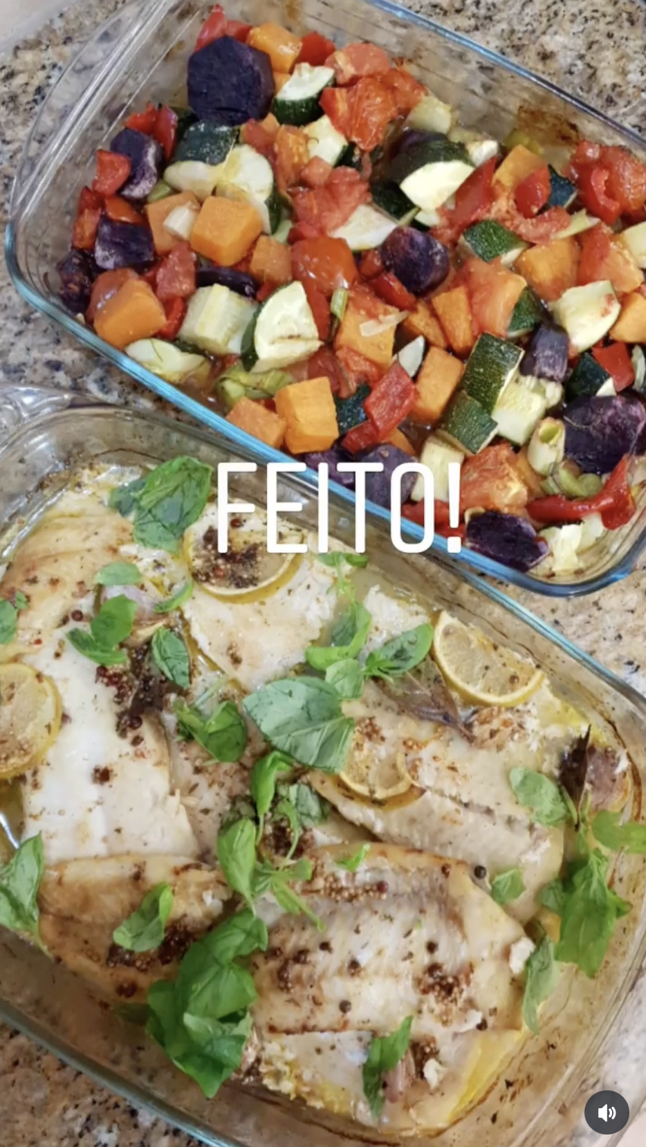 Leva os legumes ao forno juntamente com o peixe e deixa cozinhar uma 30a 40 minutos (o peixe deverá ficar pronto um pouco antes dos legumes, uns 20 minutos serão suficientes).
