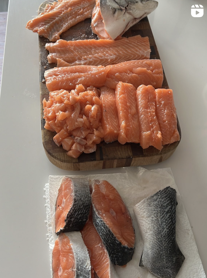 Normalmente 4 lombinhos de salmão congelados são entre 11€ a 13€.